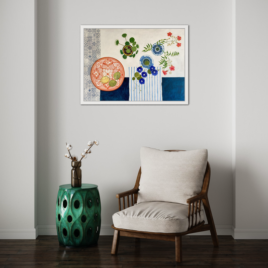 Moroccan Bowl | Floral Still Life | Mixed Media Original Artwork
